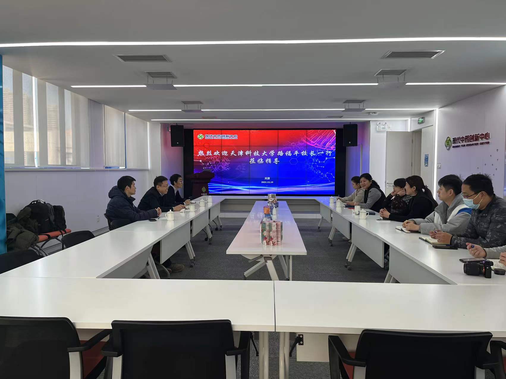 路福平一行对创新中心的中药智能制造装备、分析检测平台、大健康产品展区等进行了深入了解。在随后的座谈会上,王苹总经理对科技大学一行表示热烈欢迎,她介绍了创新中心的发展历史和定位,企业规模与发展成就,希望互补科技大学人才和研发优势,在中药组分分析、中药绿色智能制造、生物技术研发等方面进行更广泛的合作。创新中心首席科学家刘代琳、研发经理张静泽对近年来创新中心的主要研究成果进行了系统汇报。