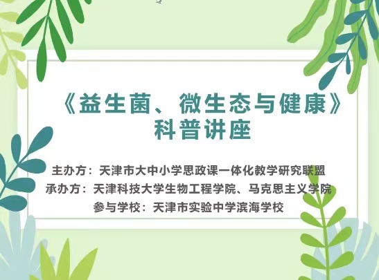 院长朱新华为滨海新区实验中学全校师生做了《围绕学科特色,“三全育人”显实效》、《益生菌、微生态与健康》及《坚持立德树人,培育科学精神》等专题讲座。滨海新区实验中学师生2000余人全程参加视频会议。