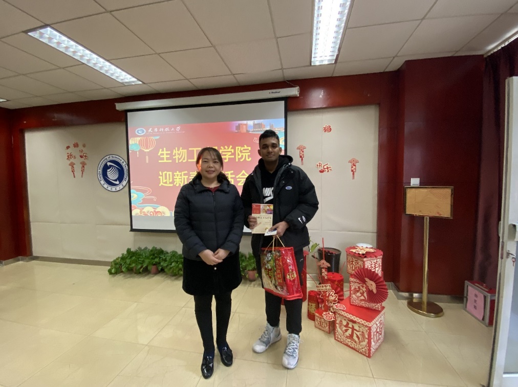 副院长滕玉鸥老师向留学生同学赠予新年礼物和寄语,教师代表刘夫锋老师、崔建东老师也号召同学们利用好这段特殊的时光,铭记住这一特殊的春节。