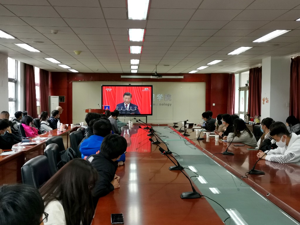 组织师生在滨海中校区2号楼206会议室集中收看了党的二十大开幕盛况,广大师生满怀热情,聚精会神地聆听习近平同志代表十九届中央委员会向大会所作的报告,第一时间领会大会精神,边看边做好记录,不时以热烈的掌声回应大会精彩报告。