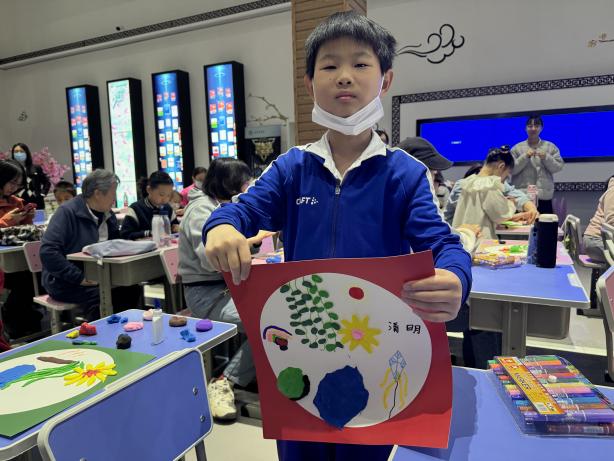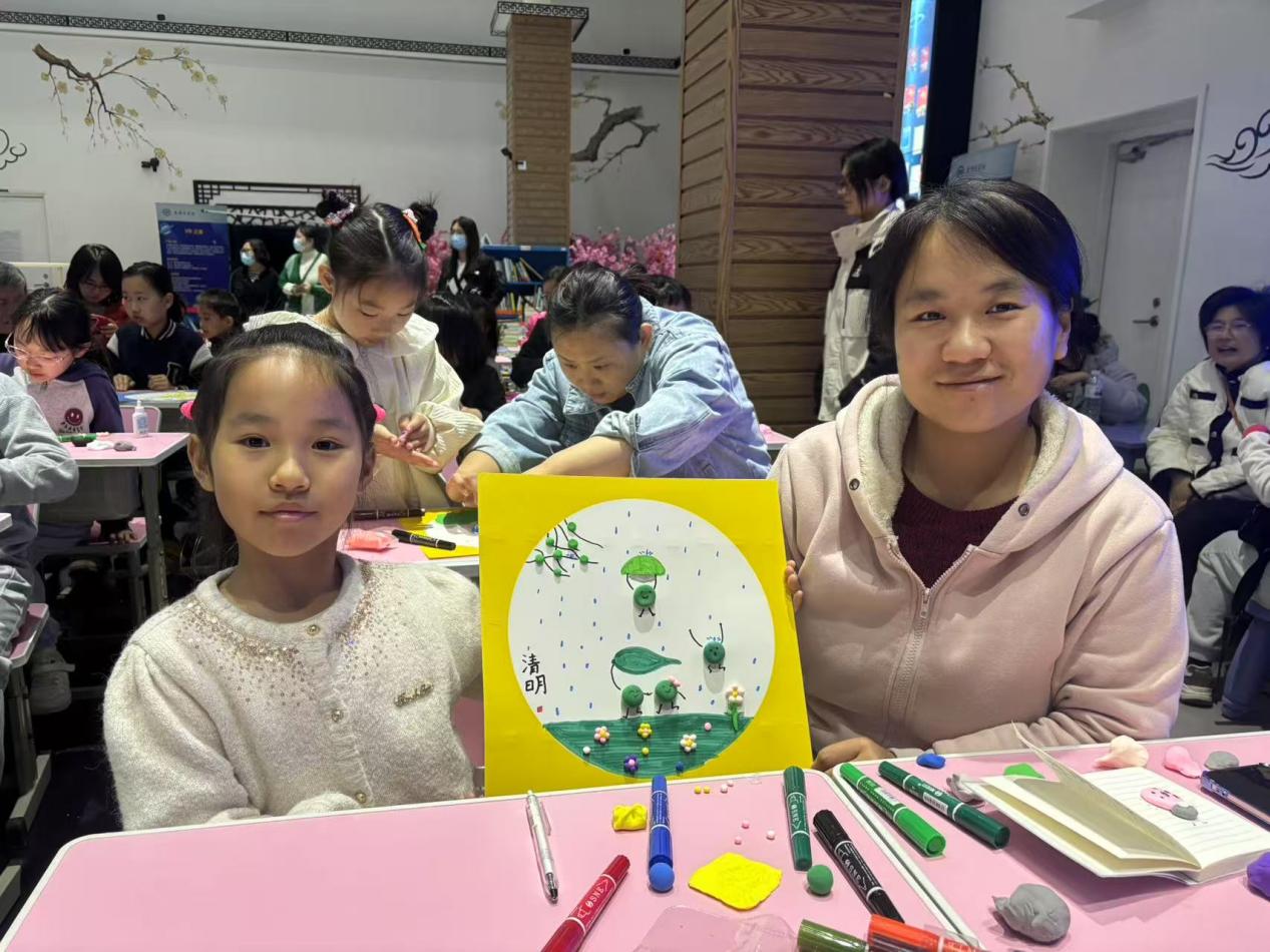 在主讲人王雪玉及志愿者的指导下,小朋友们制作手工粘土画,让孩子们充分发挥创意,动手制作专属的清明节挂饰。不仅锻炼了动手能力,也增强了对节气文化的认识。这样的活动既有传统文化厚度,又有现代科技温度。通过节气科普与动手实践,孩子们既加深了对清明文化的理解,又培养了科学素养和环保意识。