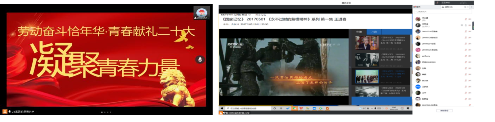 图2.2022年4月23日-28日,线上会线下相结合开展劳动奋斗恰年华·青春献礼二十大主题班会