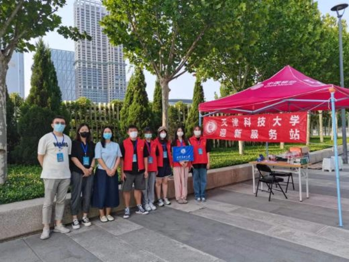 迎新志愿者的身影便活跃在滨海站迎新接待点,为2022级新生第一时间送去学校暖心的接站服务。志愿者们高举醒目的接待牌,坚守在各个出站口,进行乘车登记、体温筛查、入校码扫描等手续,帮助新生搬运行李、解答疑惑……从车站到学校,志愿者们用耐心的态度和热情的讲解为远道而来的生物学子提供“一站式”暖心服务。