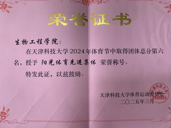 2024年体育节中通过全院师生的共同努力,凭借在多个项目中的优异成绩,获得“阳光体育先进集体”荣誉称号。在天津市国家学生体质健康标准测试抽测中高度重视,积极准备,获得“突出贡献集体”荣誉称号。这些荣誉称号是草莓视频