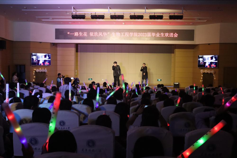 领导老师送别2023届毕业生特别制作的寄语视频,老师们用谆谆教诲共同祝福学生们在人生新的征程上,保持前进,不负青春;一首《第一天》正式拉开晚会帷幕,唱响悦耳动听的青春旋律;《阿刁》歌声悠扬,小品《如此队友》和歌曲《不再犹豫》,展示着团队合作的重要性和生命活力,笛子串烧《不愁+无羁+青花瓷》勾起了大家对大学生活的无尽回忆,歌曲《心墙》、《海阔天空》、串烧《再见+放心去飞》再次点燃全场,响起雷鸣般的掌声,留学生歌舞节目《Srilankan cultural songs with traditional dance》更是惟妙惟肖,向大家表达了来自异乡的毕业祝福,全体辅导员老师带来的歌曲《明天会更好》将最真挚美好的祝福送给本届毕业生。整场晚会在190411班演唱的歌曲《这世界那么多人》中拉下帷幕。