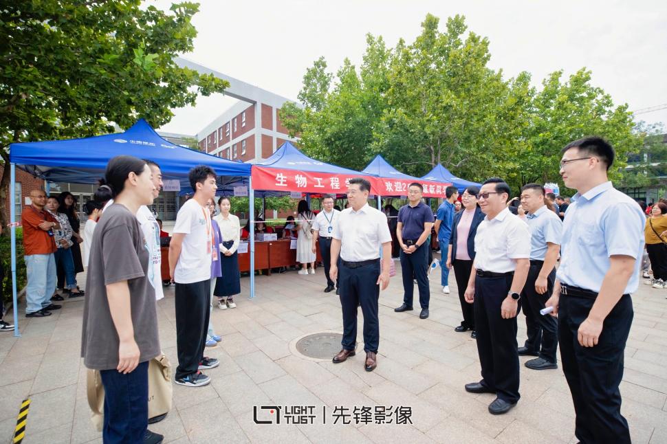 迎新现场,驻足迎新现场的每一处详细询问、了解迎新工作的进展并与新生们亲切交谈,言语之间满怀对大家的关怀和期待。