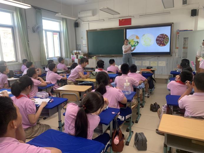 双减课后服务志愿者2020级本科生万坤榕向同学们提问了“大家是否知道微生物”,“生活中常见的微生物有哪些”等问题,随后通过生物知识科普视频让大家对微生物有大概了解,每个孩子带着自己的问题开始课堂学习。
