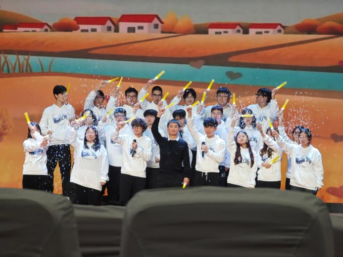 伴随着悠扬的音乐,班级文化建设评比的舞台拉开序幕,首先,由樊云光老师带领2023级本科生班委为大家倾情演唱一首《平凡之路》。接着,比赛正式开始,由各个班级按照抽签顺序依次上台展示班级文化建设PPT,并进行班级文艺节目展示,各个班级准备充分,团结向上,激情洋溢,展现出了良好的班级风貌。