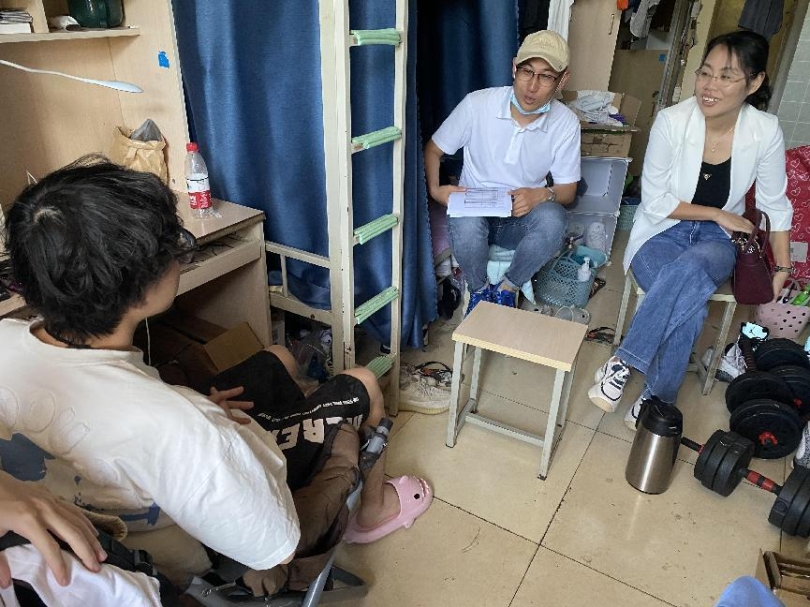 2019级本科生辅导员滕翠华,2019级本科生辅导员田凯深入走访了2019级本科男生与女生公寓。针对同学们在考研上存在的一些问题、困惑进行细心解答,鼓励同学们科学高效备考。