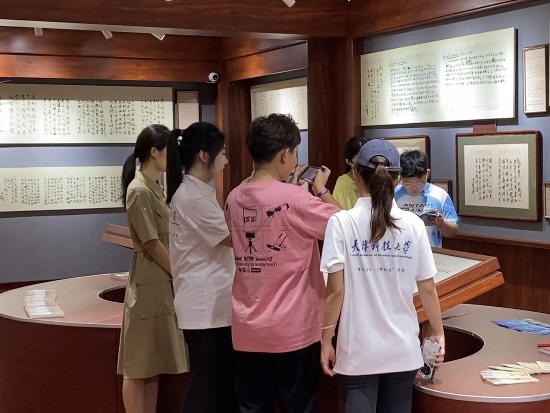 实践团首先来到李大钊故居。这座青砖灰瓦的北方院落里,先生手植的丁香树、石碾等物件静静伫立,仿佛在诉说着过往的故事。东厢房的土炕与煤油灯,让人联想到少年李大钊苦读的身影;西厢房的《天演论》复刻本,则见证了他“创建青春之国家”的壮志。随后,在村支书范红立的带领下,实践团参观了李大钊手迹作品展与少年李大钊教育馆。泛黄手稿中“铁肩担道义,妙手著文章”的字迹,以及影像复原的历史片段,让成员们更立体地感知到先生探索救国道路的艰辛与传播马克思主义的坚定。