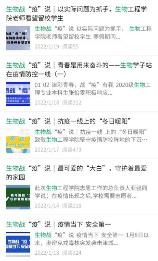 党委掌握学生一手信息、为辅导员有效工作提供了精准实施工作的必要基础数据,精准掌握每日学生在校、在津、在京、不在津和京、核酸检测人数,发热数、隔离数、健康码变色数,并随着多点疫情反复,新增天津、北京、其他省份封控区、管控区、防范区学生数。此外,辅导员任艳萍、李璐、申莉、周丽媛、王小楠、景文杰、吕晓彤主动报名草莓视频