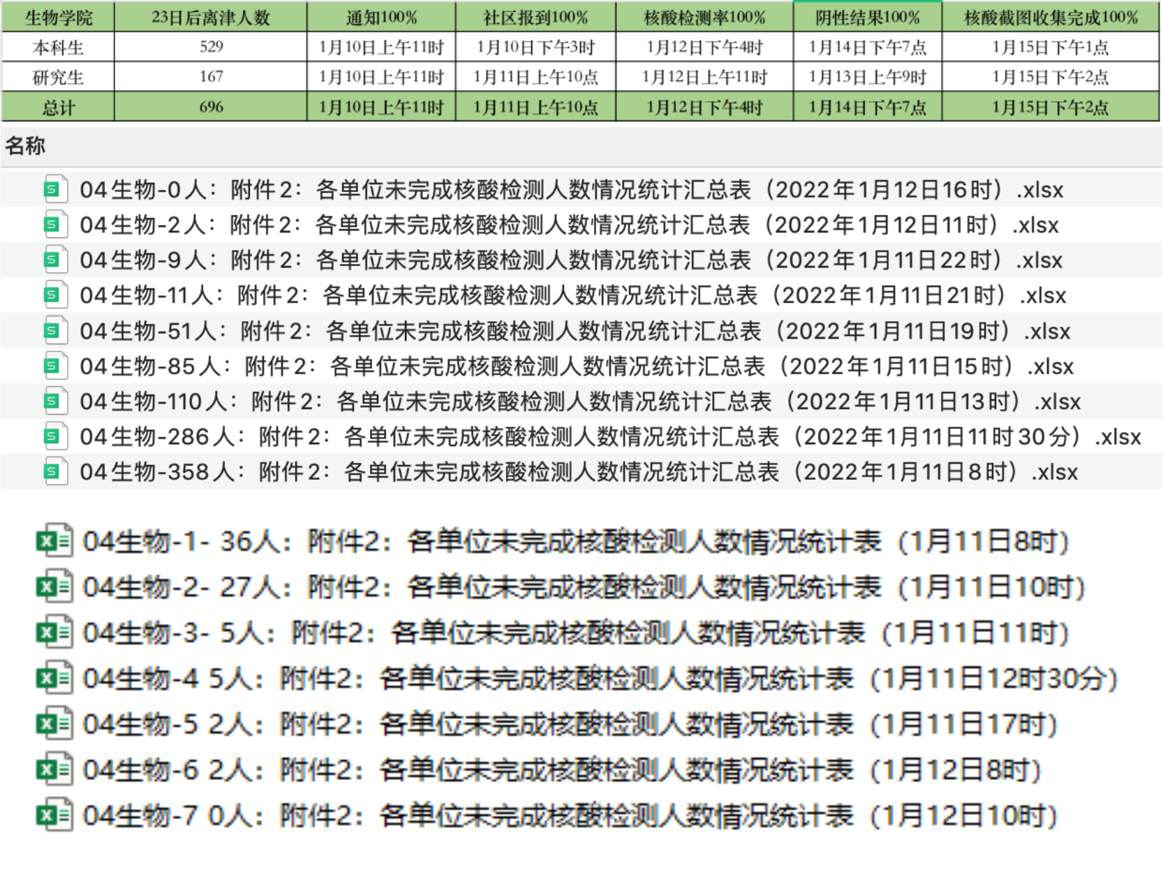 本科生、研究生23日及之后离津学生核酸检测数据(每两小时更新一次)