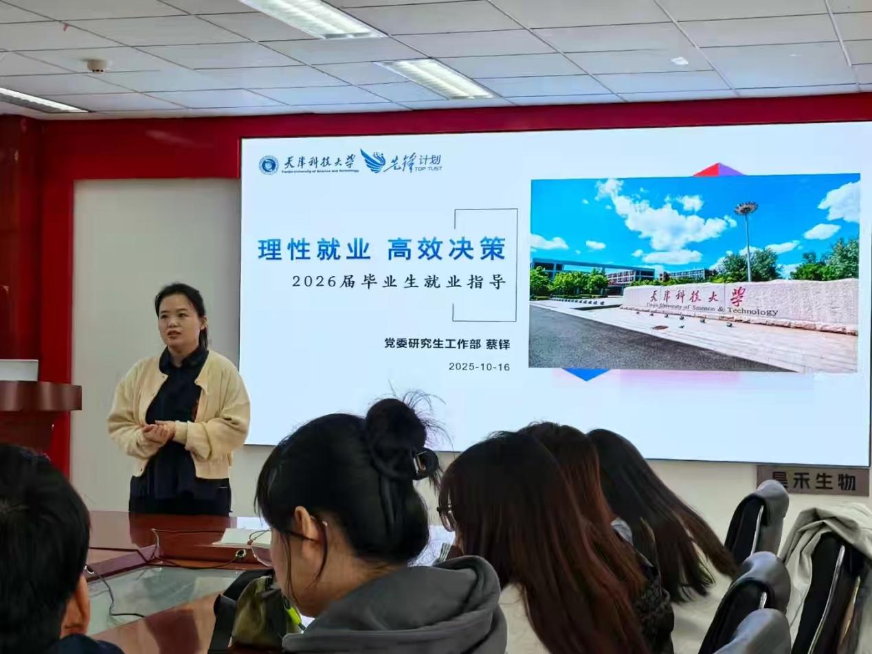 举办“理性就业·高效决策”专题就业指导活动。本次活动特邀校党委研究生工作部蔡铎老师担任主讲,吸引了众多2026届毕业生来到现场参与活动。