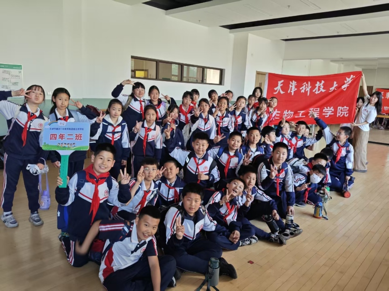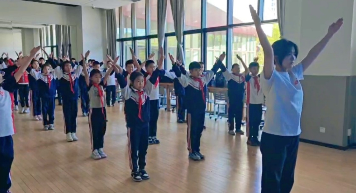2024级本科生代表赴天津市塘沽湾小学四年级二班开展“阳光健体,律韵润心”心理韵律操推广活动。
