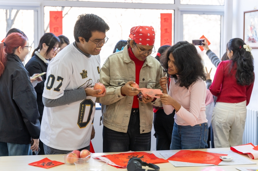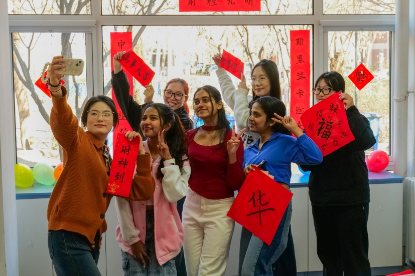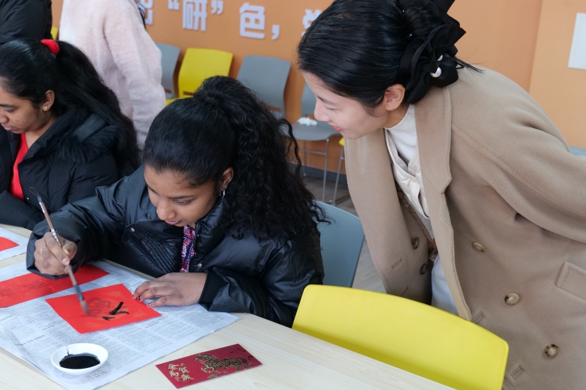 滨海校区学生一公寓一站式活动室内张灯结彩、墨香萦绕,一场别开生面的“墨香迎春·福满宿舍”活动在此盛大举行。16名2025级斯里兰卡本科留学生踊跃参与,他们跨越山海,带着对中国文化的向往与好奇,全身心投入到这场春节文化体验盛宴中,为冬日的校园增添了一抹温暖而绚丽的色彩,也为中外文化交流注入了新的活力。