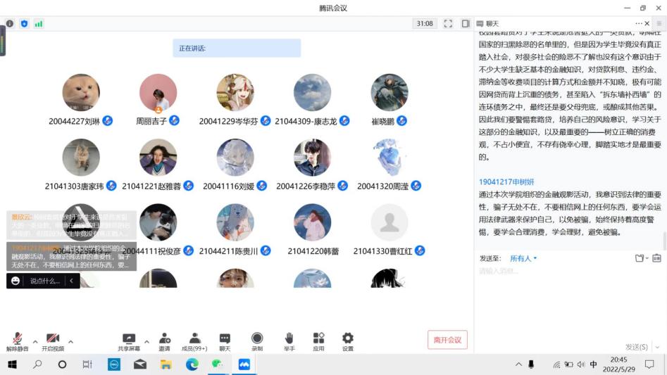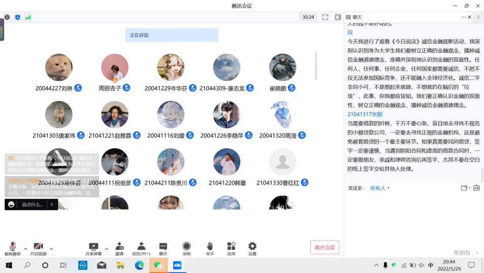 以线上腾讯会议的方式面向全院本科受助学生、贷款学生开展“践行诚信 铸就文明”——诚信金融观影活动。