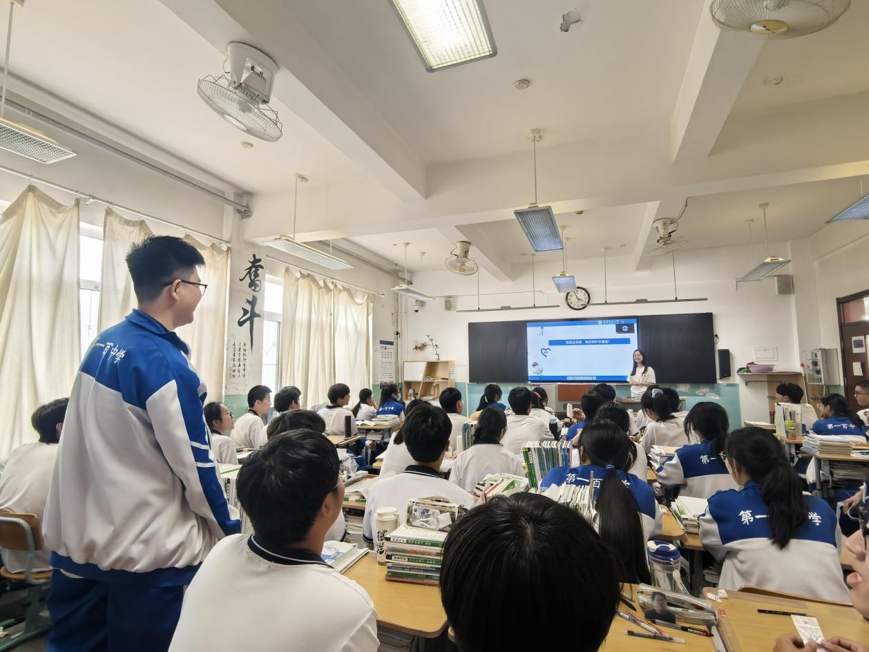 240444团支部还为第一百中学高二四班带来“奇妙的生理学与高中生物的趣味碰撞”知识科普活动。主讲人李寒霜紧扣高中生物教材,借助生动案例、形象比喻,将复杂的生理学知识通俗化。在轻松愉快的氛围中,同学们不仅领略到生理学的奇妙之处,还深化了对生物知识的理解。