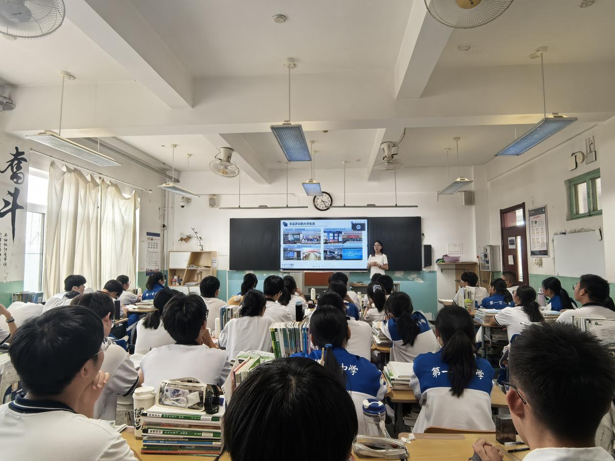 专业认知,激发其科研探索热情。在大学生活分享环节,主讲人通过生动讲述,将社团活动的缤纷多彩、学科竞赛的紧张激烈、志愿服务的暖心场景娓娓道来,带领同学们提前领略大学生活魅力。此外,学校食堂的特色美食文化与图书馆浓厚学术氛围的介绍,进一步点燃同学们对大学生活的憧憬与向往。