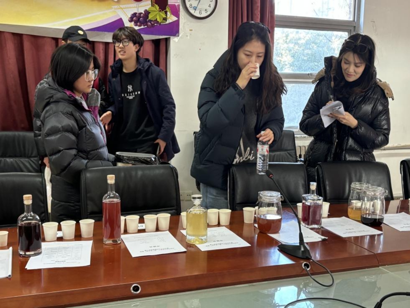 第十一届“夜光杯”自酿葡萄酒创新大赛初赛在滨海中院2-208会议室正式开启。自11月13日宣讲会播撒下酿酒的种子以来,各院系学子带着近一个月的实践成果,在冬日里呈上了一场关于专业与匠心的味觉盛宴。
