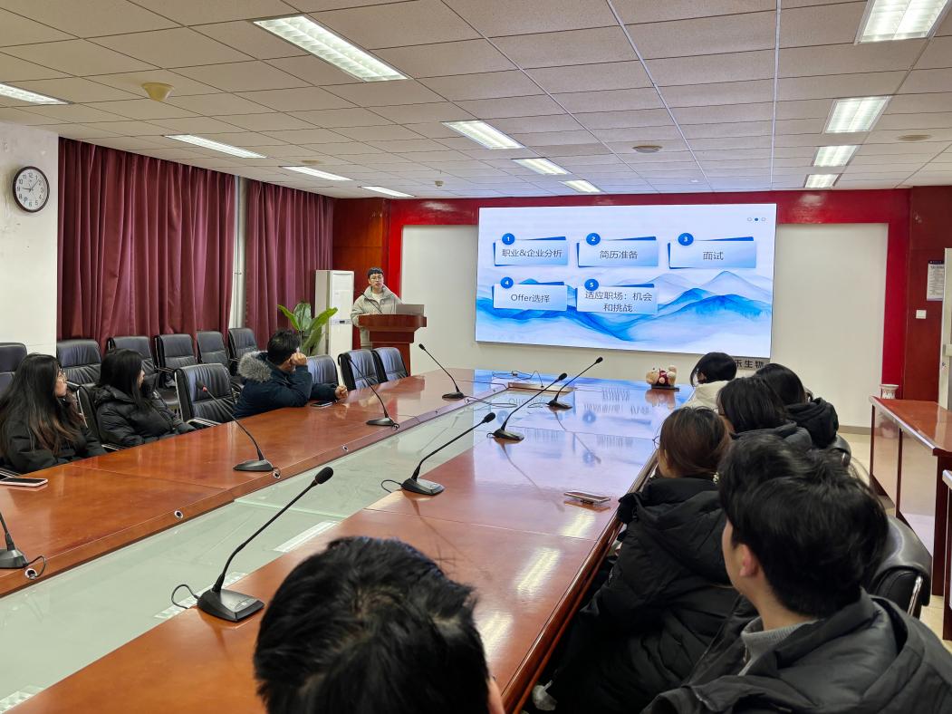 特别开设“职场学长说”校友经验分享专栏。2026年1月17日,首期校友经验分享会在2-208会议室顺利举办。活动特邀生物学院2020级校友焦晓波担任主讲嘉宾(现任凯莱英医药集团研发部组长),学院毕业生辅导员和本研毕业生参加。