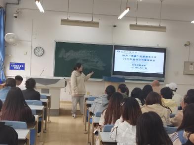会上,田凯老师对志愿服务中“怎么讲”、“讲什么”进行培训。在“怎么讲”方面,为大家介绍了之前进行志愿服务同学的经验作为参考,并让大家根据别人的经验加入自己的思考,形成自己的风格。在“讲什么”方面,志愿服务的主题分为三个方面,第一方面是结合学科专业知识,讲述家乡美食文化,第二方面是挖掘红色资源,讲述红色故事,第三方面是讲述家乡传统文化。