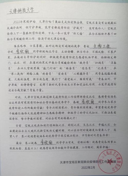 2021级制药工程专业牛晨曦同学、2020级生物工程专业李欣丽同学、2018级制药工程专业杜容竹同学在这场没有硝烟的战争中的突出表现表示衷心的感谢和崇高的敬意!