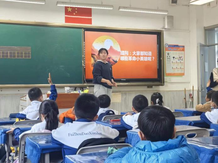 课后服务志愿者2023级本科生吴逸晨以生动的语言和视频他们讲述了一段小英雄们故事——松山娃娃兵。松山娃娃兵的故事,是一曲英勇的赞歌,更是一份信仰的传承。松山娃娃兵们英勇顽强、不怕牺牲的精神风貌,让同学们感受到了信仰的力量。同时,通过文字和影像资料的辅助,让同学们深入了解了这段历史的厚重与伟大。在了解松山娃娃兵的故事后,同学们纷纷自我阐述了自己所认识的小英雄的故事,他们谈论着这些小英雄的英勇事迹,剖析了他们的精神内涵。这些小英雄,或许是王二小,或许是小萝卜头,也或许是海娃,他们身上都展现出担当精神、奉献精神和爱国情怀。