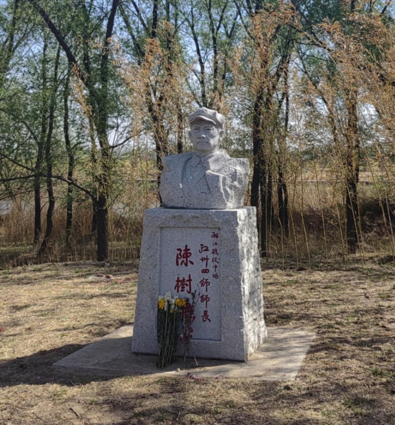 翠柏青松伴英烈,清明祭扫寄哀思。在此次行军路途中,郁郁葱葱的竹影下,屹然伫立着先烈陈树湘的雕塑。为铭记先烈的丰功伟绩,传承英雄的光荣事业,弘扬爱国主义精神,深切缅怀革命烈士,制药工程本科生党支部一行人组织开展了“清明祭英烈”活动。在雕塑前,讲解员声情并茂,讲述了陈树湘烈士的英勇事迹:在决定党和红军命运的湘江战役中,在众多红军指挥员里,有这样一位传奇人物:他从一个农民当上了红军师长;他以英勇善战驰骋于战场;率领数千名勇士,向死而生,血战湘江!他断肠明志,为苏维埃新中国流尽最后一滴血,他就是红军第34师师长陈树湘。“英雄血染湘江渡,江底尽埋英烈骨;三年不饮湘江水,十年不食湘江鱼。”桂北民间流传的这首民谣,也从一个侧面印证了湘江战役的惨烈。湘江惨胜直接导致遵义会议的召开,迎来我党历史上的伟大转折。听了陈烈士的故事后,同志们无不为之动容,于是在清明之际,全体同志默哀敬礼,寄托对英烈的无限缅怀。